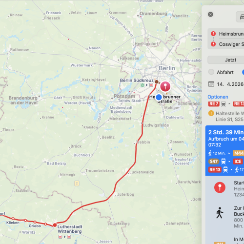 Ab ins Auto und auf nach Hause. Telefon gekoppelt für Musik und Navi. 1 1/2 Stunden und 130km später mit 40% Restakku in Berlin angekommen.