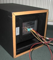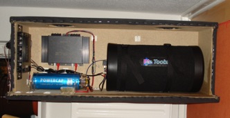 Bei ebay einen aktiven Clarion SRV-202 Subwoofer gekauft. Eine Subwoofer Frequenzweiche versuche ich auch noch zu bekommen und ordentliche Terminals mit Schraubanschlüssen für den Subwoofer kommen auch.