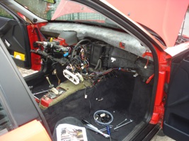 Aus dem Passat habe ich noch den aktiven Pyle Toobz Subwoofer, die Lautsprecher, Powercap sowie die aktive Frequenzweiche und Endstufe „übrig“. Die Box aus dem Passat passt fast wie dafür gemacht hinter die Rücksitzbank. Die Lautsprecher wandern allerdings aus der Box in die Hutablage.