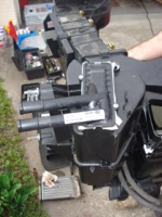 Heute habe ich mit Thorstens Hilfe den Wärmetauscher ersetz, diverse Flansche im Motorraum hat Thorsten gereinigt und neue Dichtungen verbaut. Zusammen und mit Hilfe einer Anleitung aus dem www wurde das Armaturenbrett entfernt, der Würmetauscher ausgebaut, die Klappen im Gebläsekasten neu mit Schaumstoff beklebt, und das Ganze wieder eingebaut. Gleichzeitig noch Andis Autoradio verbaut. 8 Stunden waren eine gute Zeitvorgabe.