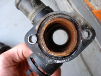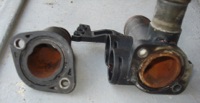 Heute habe ich die beiden Flansche ersetzt, war auch dringend nötig. Bei beiden sind mittlerweile deutlich sichtbare Risse an den Dichtflächen vorhanden, die permanenten Wasserverlust verursachten.
