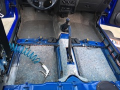 Habe die originale Folie entfernt und neue VW Türfolie (nicht geformt) mit Butylschnur eingebaut. Nach der Trocknung fanden Dämmmatten und Teppich dann auch ihren Weg zurück ins Auto.