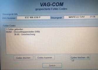 Leider trat der Fehler am Nächsten Tag dann doch wieder auf. Drosselklappe erneut gereinigt, und versucht ohne VAG COM anzulernen.....kein Geräusch....keine Bewegung der Drosselklappe.