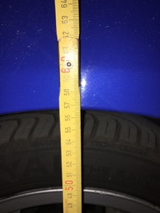 An der Vorderachse habe ich 56cm, an der Hinterachse 57cm vom Boden bis zum Radhaus.