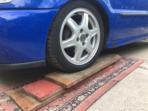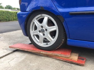 Das Gewindefahrwerk hat sich gesetzt, und seit einer Woche versuche ich es auf einen gleichmässigen Radhauskante - Bodanabstand einzustellen. Die Beifahrerseite war, bei gleicher Gewindeeinstellung etwa 2cm höher als die Fahrerseite.