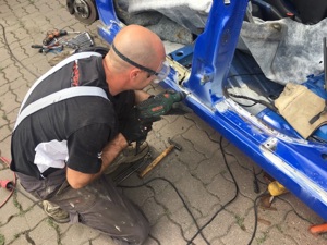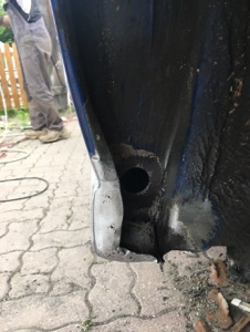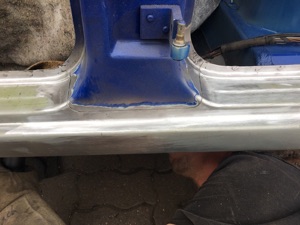 Ein neues Einstiegsblech wurde eingeschweisst, das rostige vorher ausgebohrt.