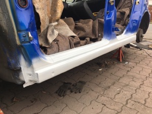 Das Einstiegsblech auf der Fahrerseite hatte Löcher und die galt es zu beseitigen.