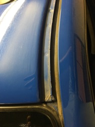 Für den Übergang an der Frontscheibe versuche ich die alte Dachleiste umzuarbeiten. Mal sehen, ob das funktioniert.