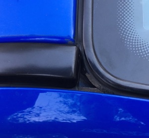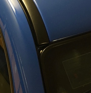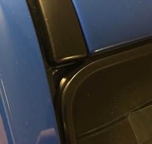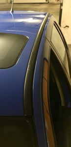Die Clipse an der Leiste halten auch die Klappen für den Träger fest. Leider passen die Clipse in diesr Position dann nicht genau zu den Vertiefungen in der Kante am Dach. Bei einem Clip fehlt ein Plastikteil, da muss ich mir etwas überlegen.