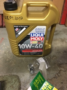 Mann Filter, Liqui Moly 10w40 und Ölablasschraube mit CU Ring von Febi gab es neu.