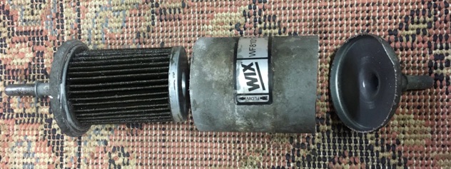 Der neue Filter ist drin. Aus dem alten Filter lief schwarzes Benzin. Der AEE ist ja nicht unbedingt für seinen ruhigen Leerlauf bekannt, nach dem Filterwechsel läuft er aber „gefühlt“ ruhiger als vorher.